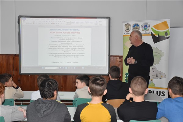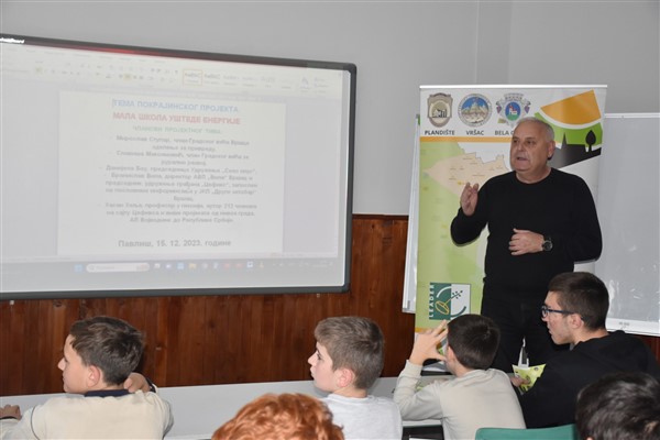 Prvo predavanje, sa dva tematska sadržaja: „Štednja od malih nogu do duboke starosti“ i „Obnovljivi izvori energije“, održano je u Osnovnoj školi „Đura Jakšić“ u Pavlišu ( 15.12.2023. ) uz prisustvo nešto većeg broja učenika, sa nastavnim filmom o uštedi energije i sa prezentacijom o obnovljivim izvorima energije.